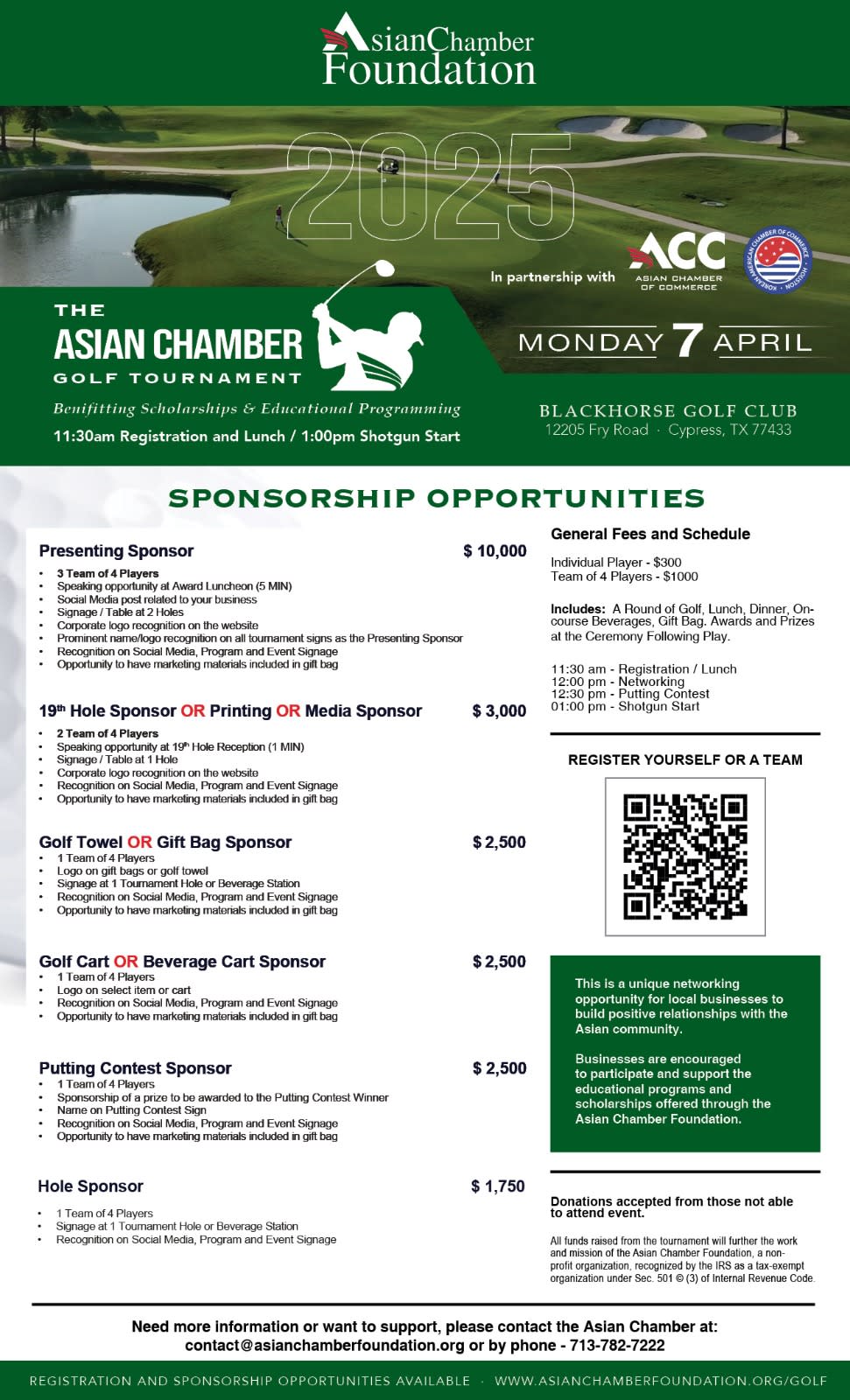 This is a unique networking opportunity for local businesses to build positive relationships with our members and the Asian community. Our purpose is help raise scholarships for our next generation of leaders as well as support the educational programs offered through the Asian Chamber Foundation.