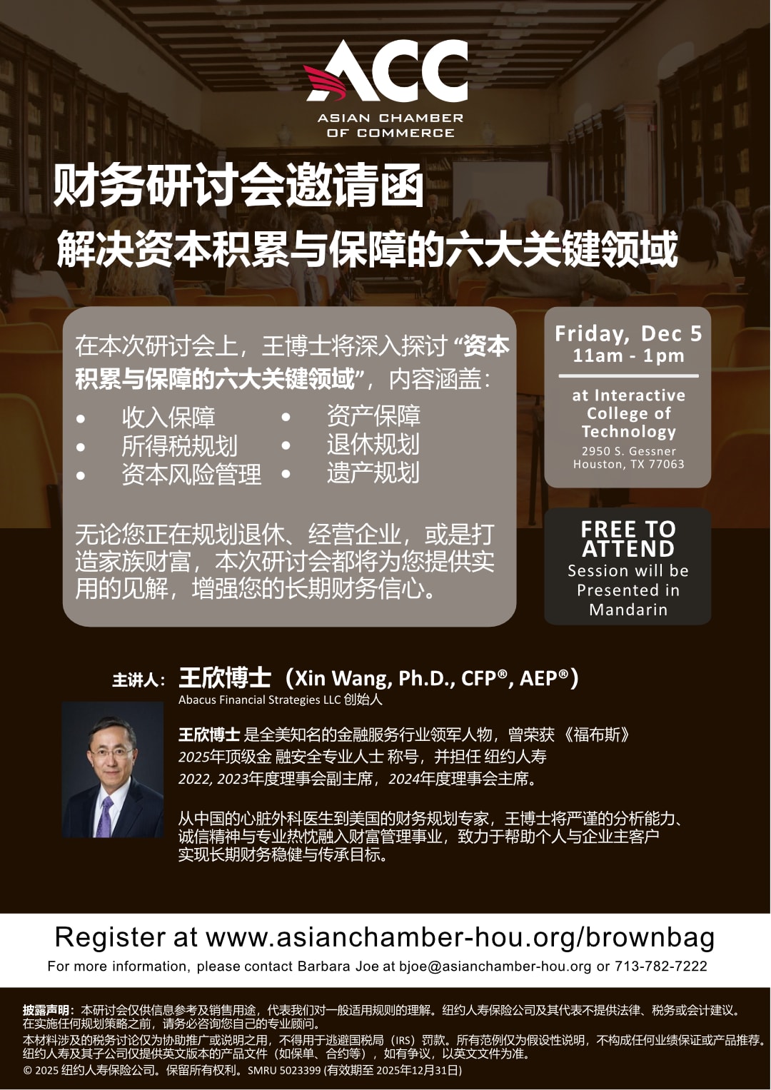 In this educational seminar, Dr. Wang will discuss the Six Key Areas of Capital Accumulation and Protection, offering insights into: